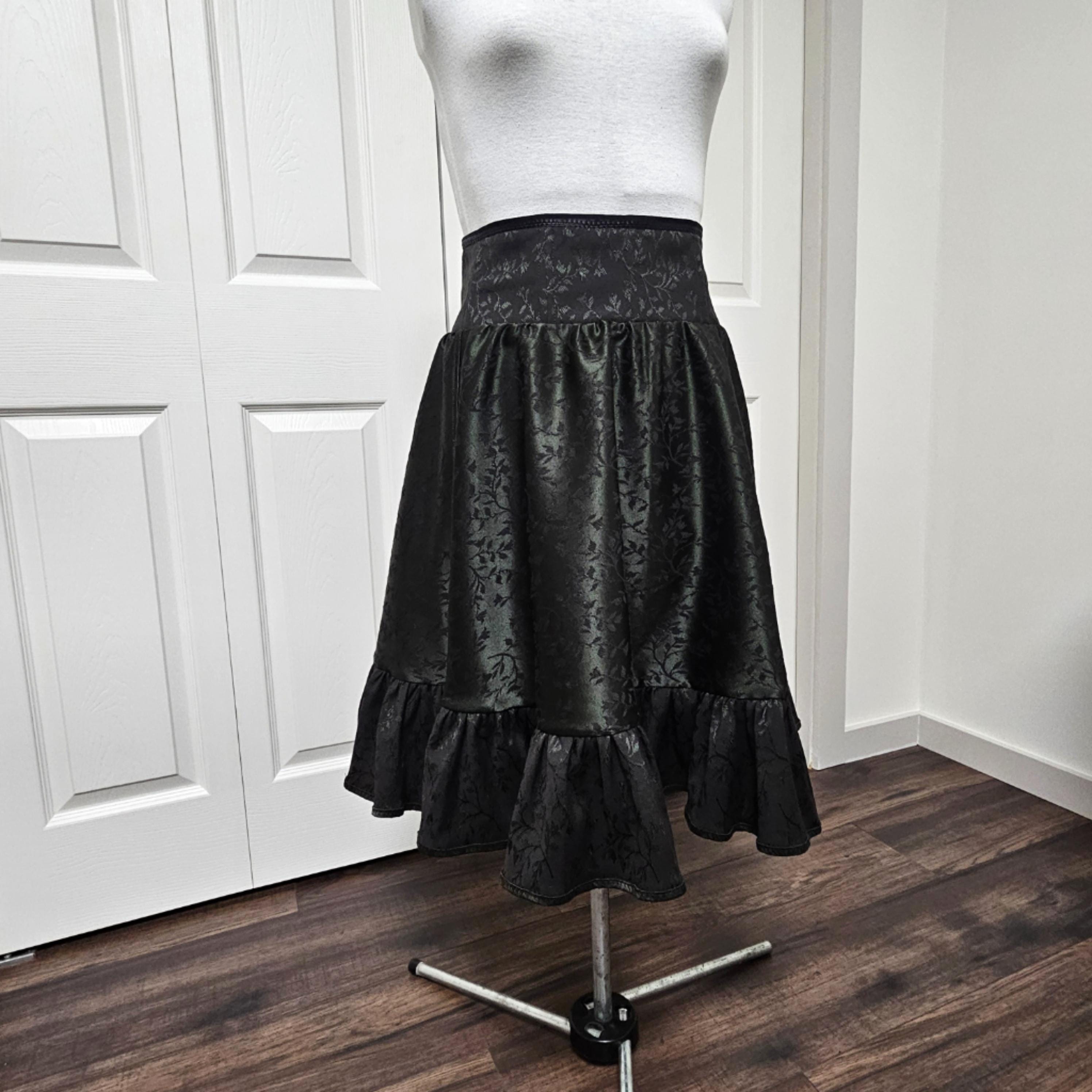 The skirt is gathered for fullness with a soft ruffle hem that moves beautifully. This is a timeless piece that blends dark romance, whimsigoth, vintage, and alternative fashion.