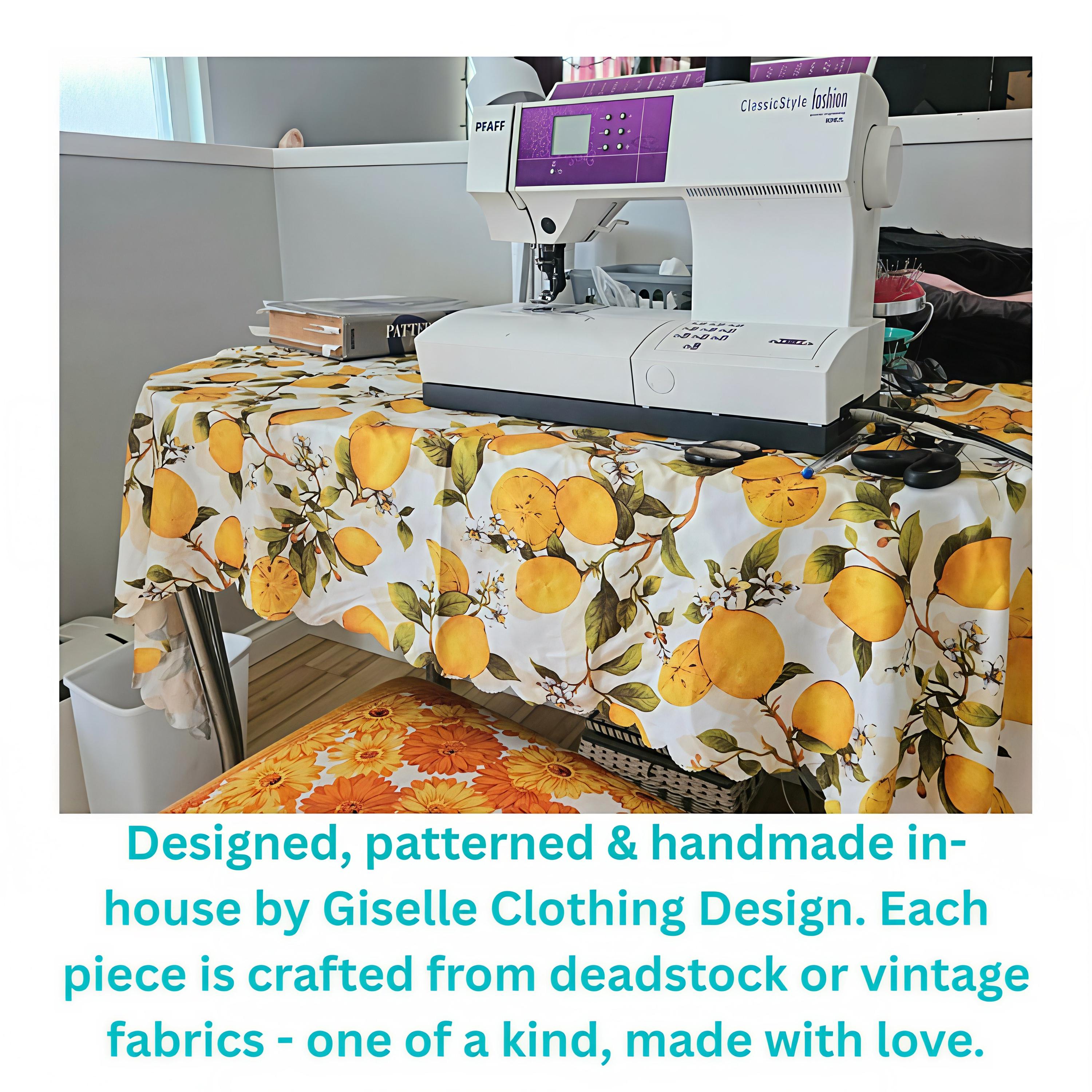 I find fabrics in all sorts of places - thrift stores, estate sales, and studio clear-outs are among my favorites. Occasionally I’ll come across a small online seller offering vintage yardage or unique deadstock. Because I work in small batches, I don’t need large quantities - just enough to spark an idea and make a few truly unique pieces. That’s part of what makes every design special: when the fabric runs out, that’s it. It can never be replicated exactly, and I love that.