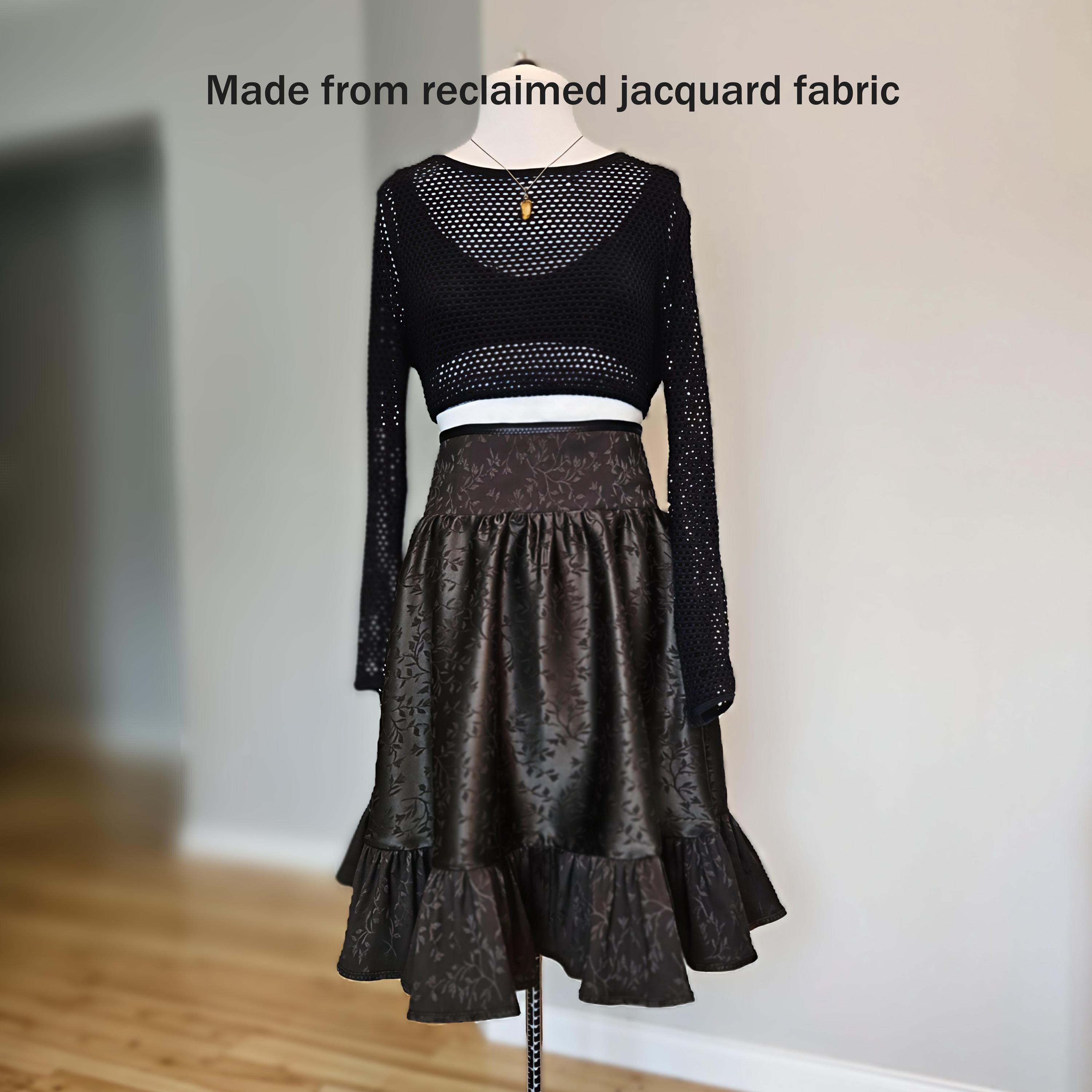 Before a fabric ever reaches my cutting table, I ask myself a few questions: Feel: Does it inspire me? Does it feel like something worth my time and care? Impact: Am I choosing this because it aligns with my sustainability values, or just because it’s convenient? Often, the right fabric speaks immediately - it feels alive in my hands. I still remember the first time I discovered a remnant of deep green jacquard that recently became one of my corset skirts. It had been sitting untouched for years in a studio sale, waiting for the right maker. Those discoveries remind me why I love working with limited, often one-of-a-kind materials.